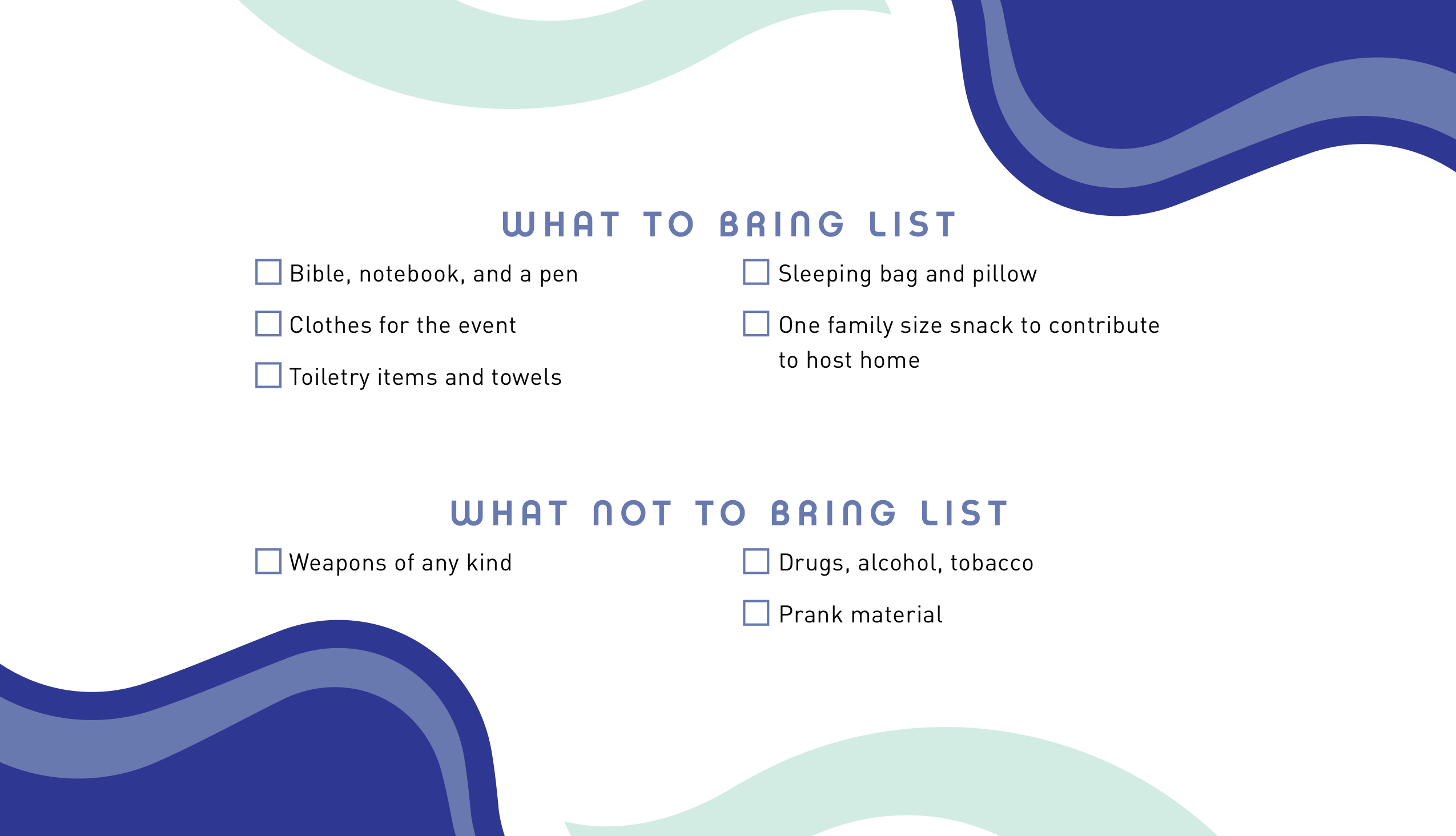 Students will meet at FBC Clyde (216 Austin St) and be transported to South Side Baptist (1425 S 7th St, Abilene). Students will be brought back to FBC at night to be picked up.